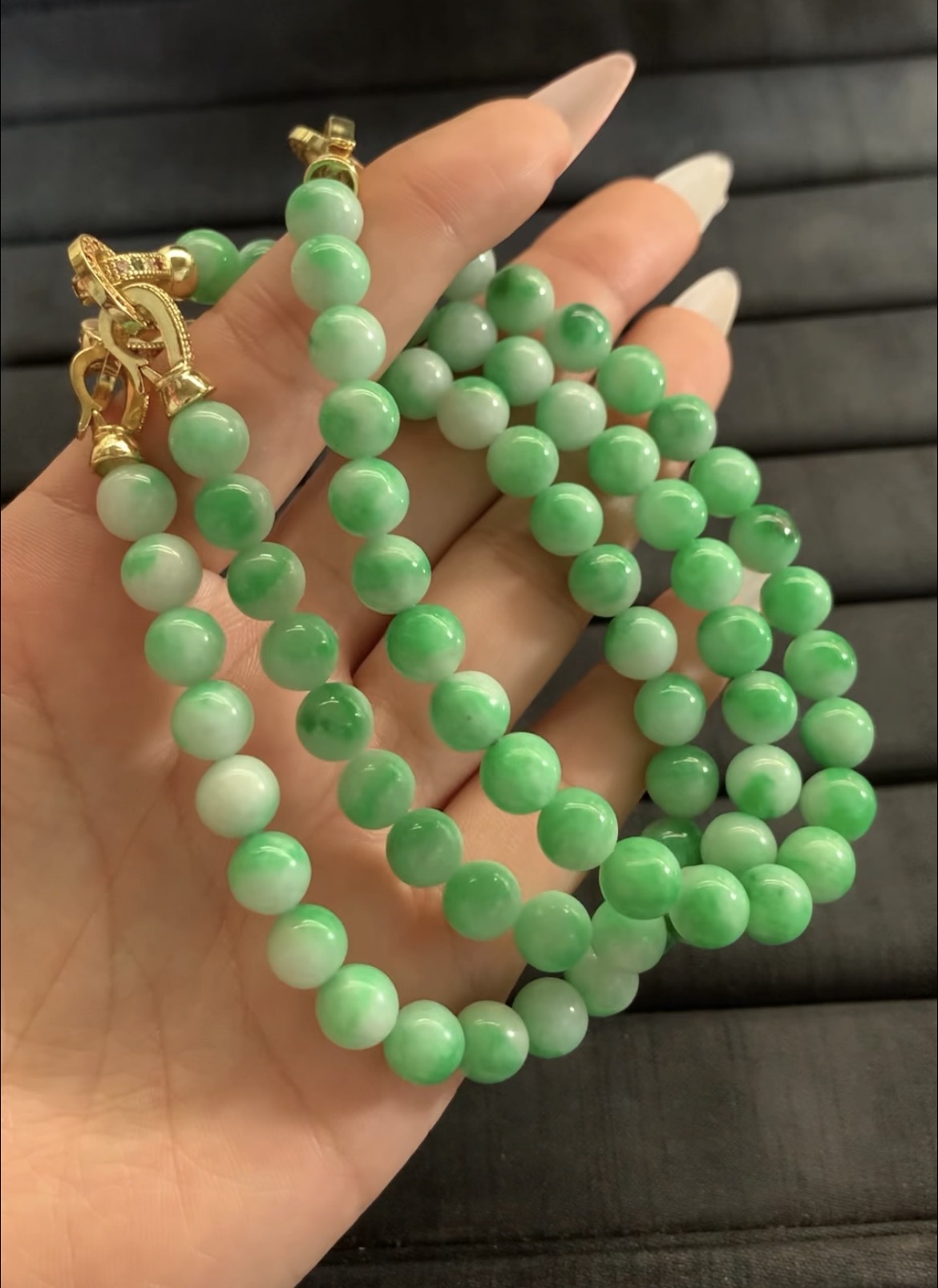 Green Jade Beaded Necklaces with Gold Clasps
