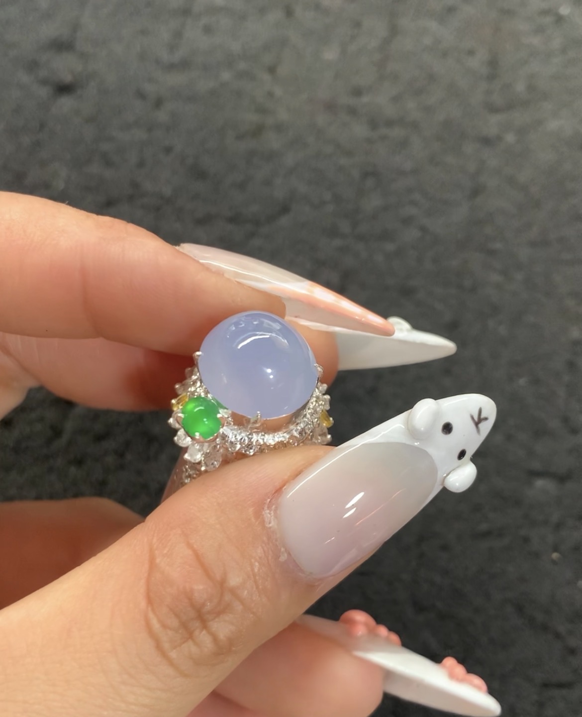 Lavender Jadeite Ring with Green Accent and Multi-Gems