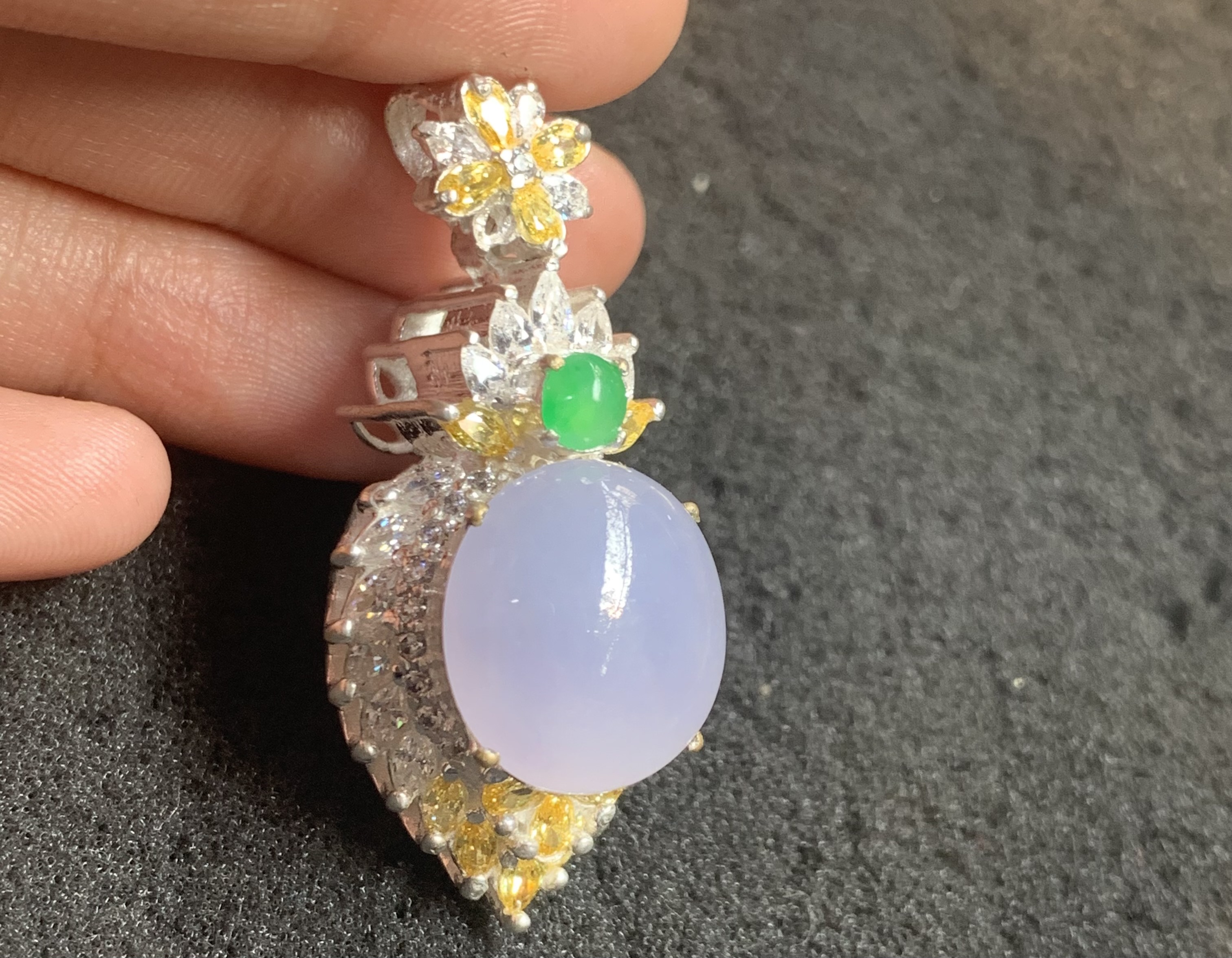 Luxurious Lavender Cabochon Pendant with Green Gem & Crystal Accents