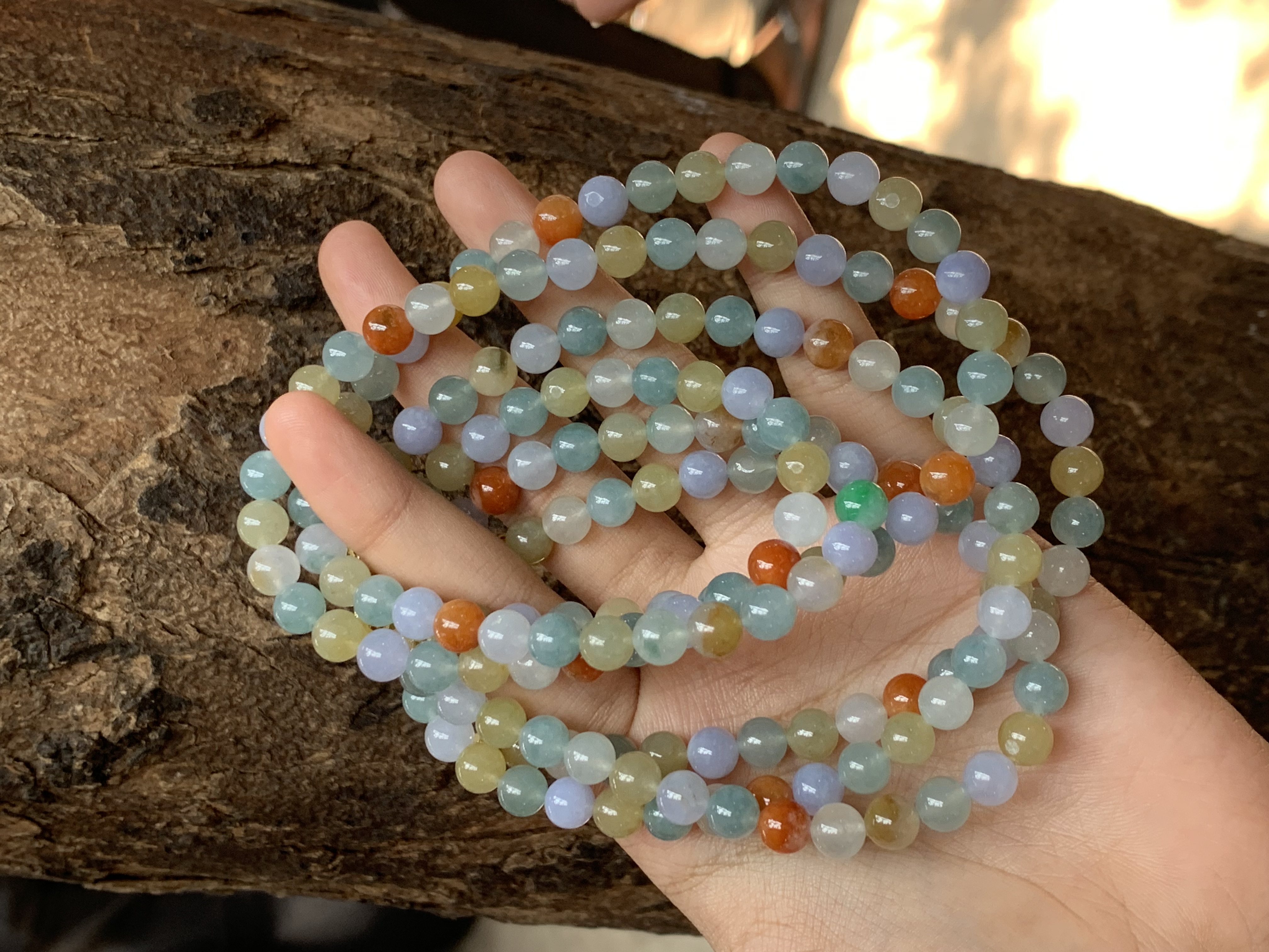 This vibrant bracelet features a strand of round, polished jadeite beads in a beautiful array of natural colors, including soft lavender, icy blue-green, sunny yellow, warm orange, and rich red tones. Each bead showcases excellent translucency and a smooth, glossy finish, with the harmonious blend of hues creating a lively and eye-catching "rainbow" effect. The natural variations in color and texture make each piece unique, while the lightweight design ensures comfortable wear. Perfect for adding a splash of natural color and positive energy to your daily look.