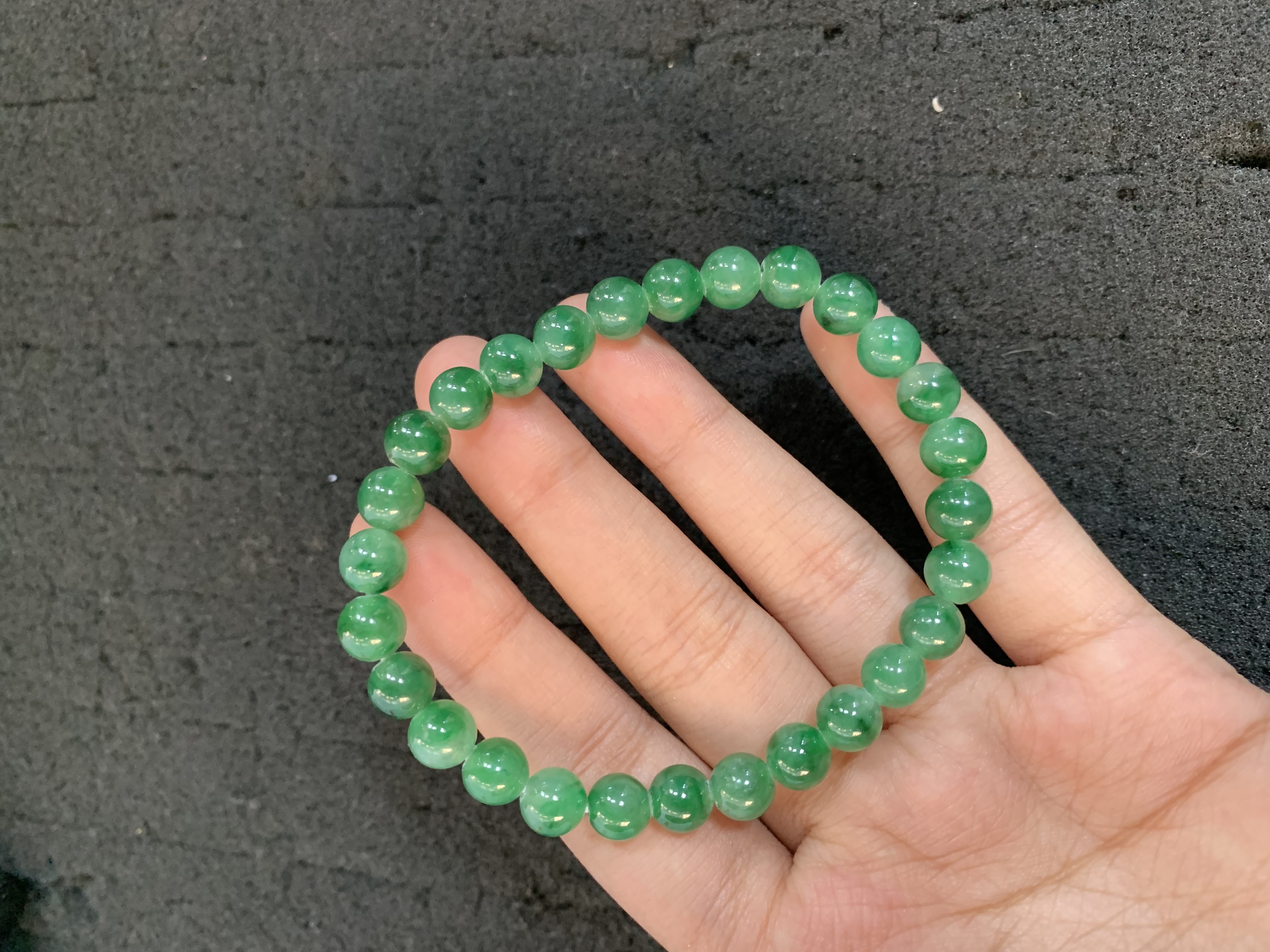 This exquisite bracelet features a strand of smooth, round green jade beads, each carefully selected for its vibrant hue and natural luster. The beads are strung together to create a flexible, comfortable fit, making it perfect for everyday wear or as a thoughtful gift. Jade is revered for its beauty and symbolic significance, often associated with good fortune, harmony, and protection. Each piece showcases unique natural variations in color and texture, ensuring that no two bracelets are exactly alike, adding to its charm and individuality.