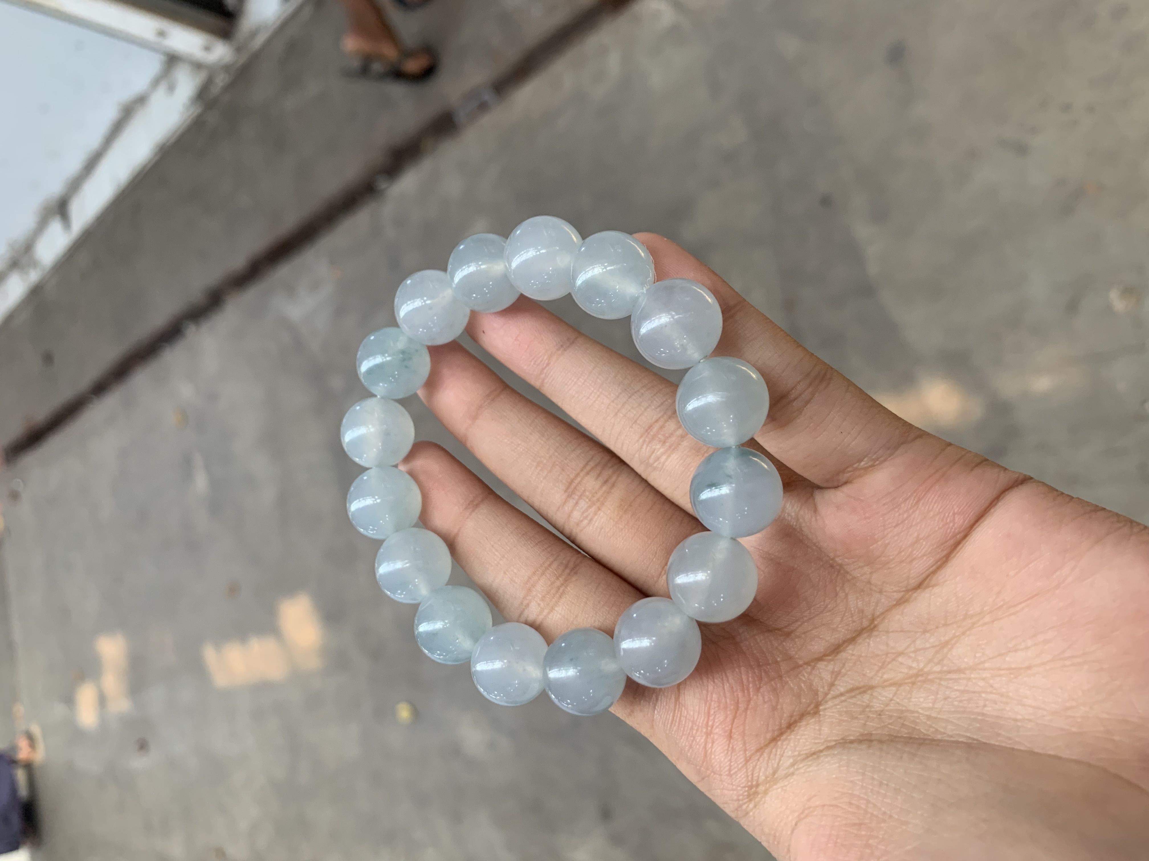 This beautiful stretch bracelet features large, round jade beads in a soft translucent light grayish-blue hue, with subtle natural patterns that add unique character to each piece. The beads are smooth and polished, showcasing the stone's inherent luster and texture. Designed for comfortable wear, the elastic band ensures a flexible fit for most wrist sizes. Blending natural elegance with simplicity, this jade bracelet is a perfect everyday accessory or a thoughtful gift for those who appreciate the beauty of gemstones.