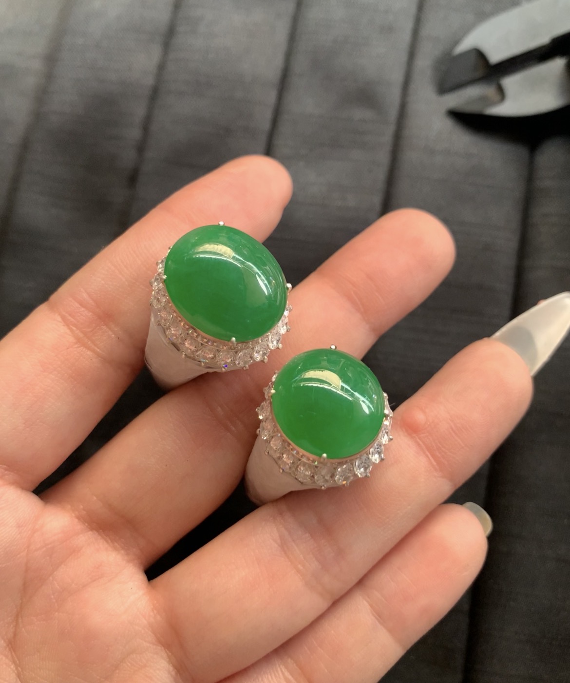 Vibrant Green Jadeite Cabochon Rings