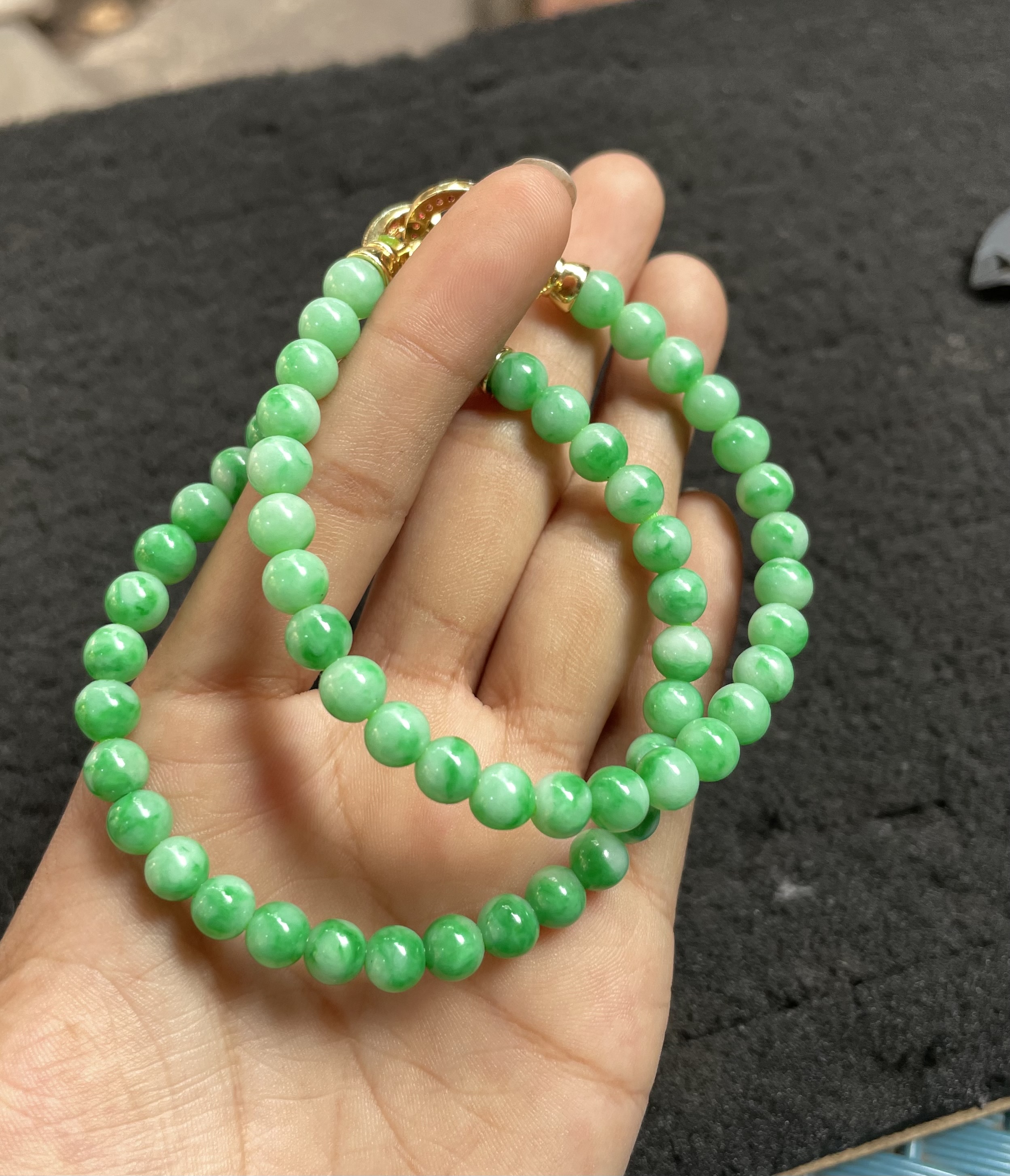 Vivid Green Jade Bead Bracelets with Gold-tone Clasps