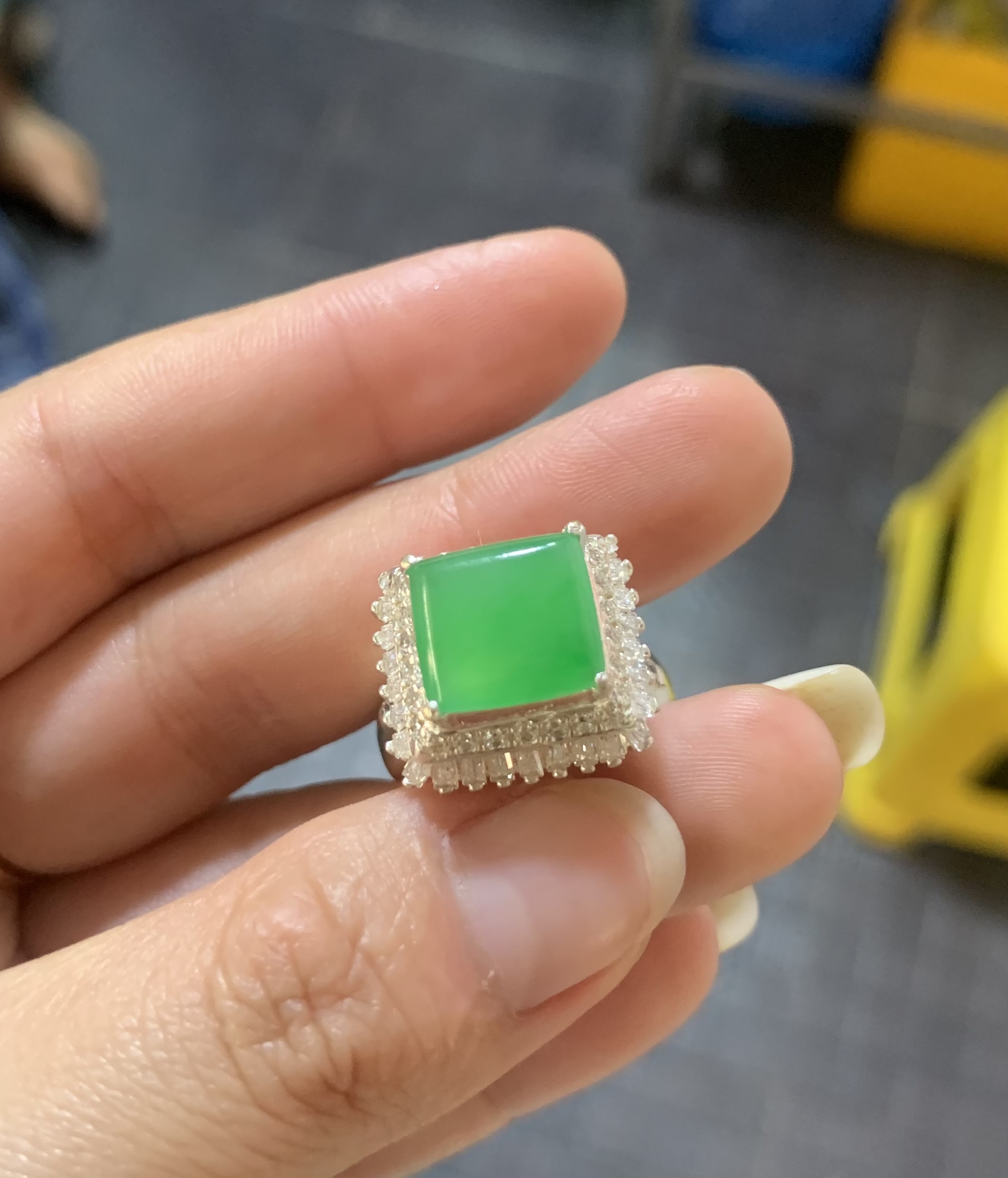 Vivid Green Square Gemstone Ring with Crystal Halo Setting